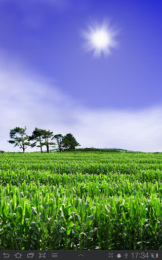 Overview: A live wallpaper request from a customer: a green cornfield swaying in the wind under a live sky with sun, moon and rushing clouds.
